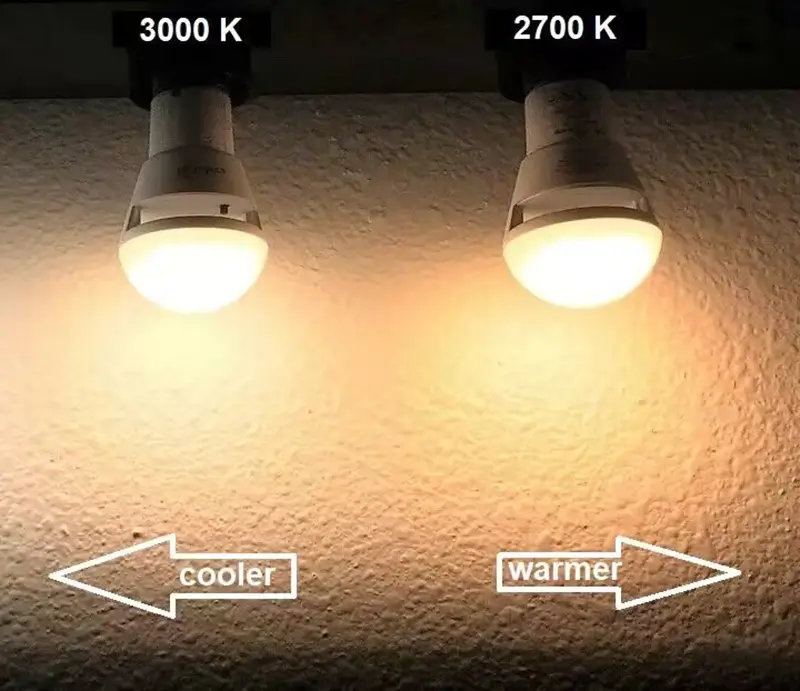 2700K er den varmere af de to. På Kelvin-skalaen vil 2700K have flere gule eller røde toner, mens 3000K vil have lidt hvidere nuancer.